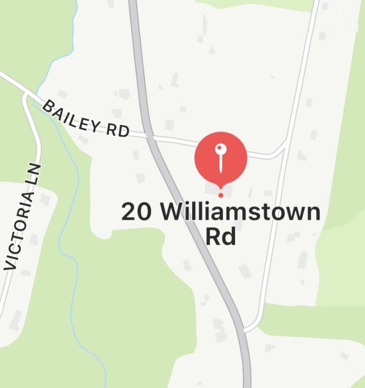 We are located at 20 Williamstown Road (Rt 7), Lanesborough, MA. Just north of the entrance to Greylock Mountain State Park on the right hand side.